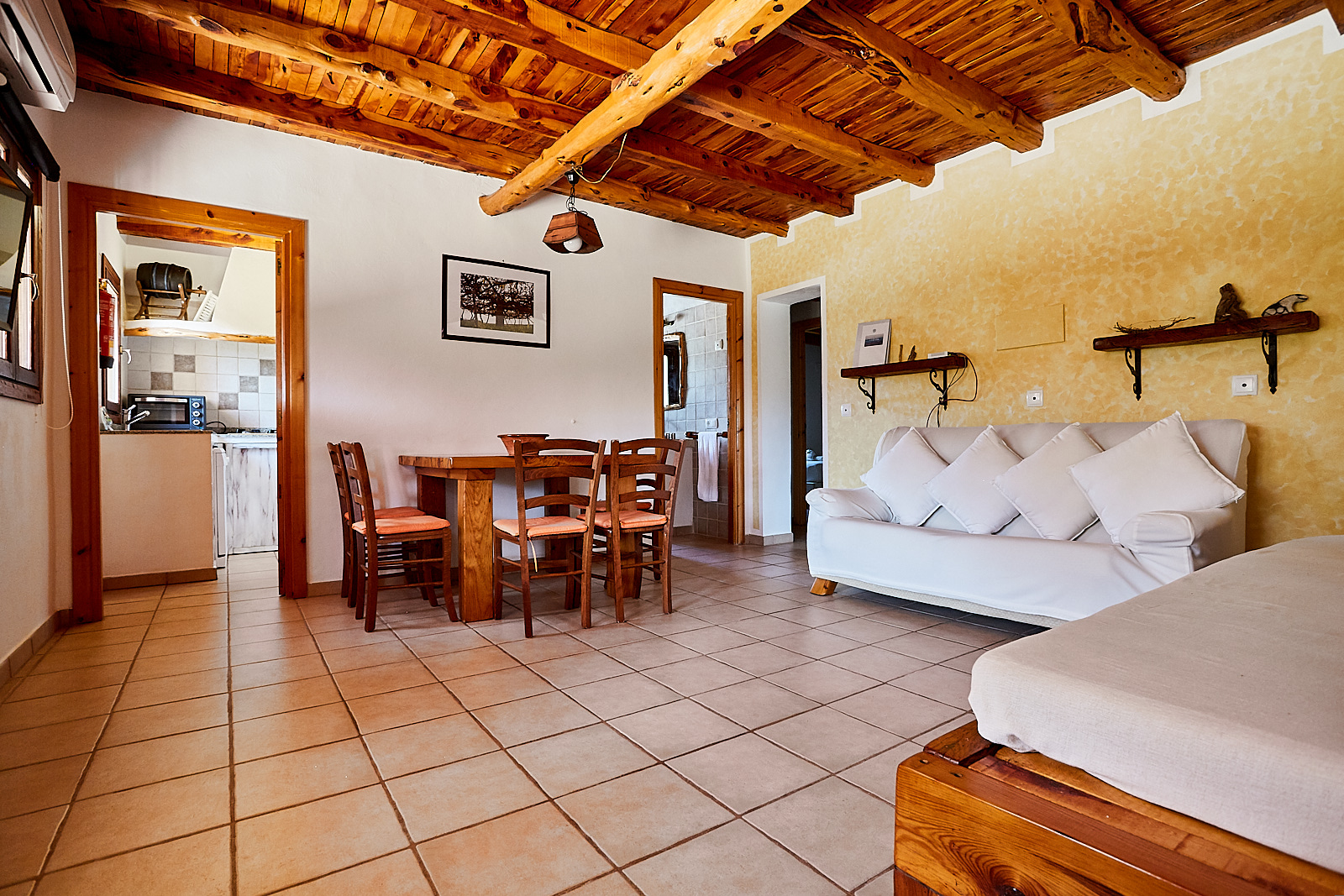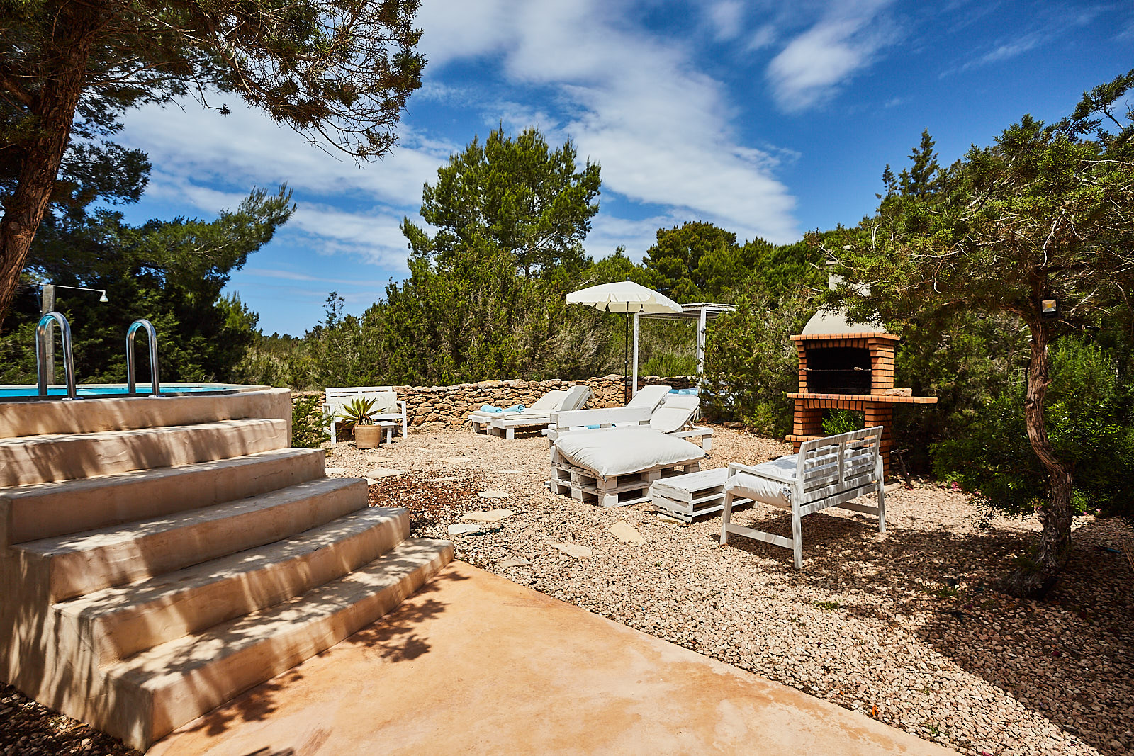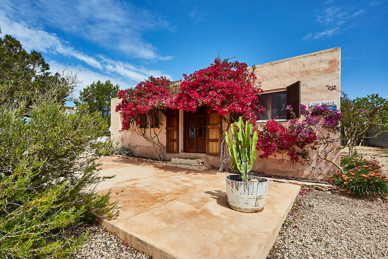 Casa Rustick is a beautiful villa located between Sant Francesc and Cala Saona. The house has 3 bedrooms, one with double bed and the other with single beds, kitchen and two bathrooms. You can also enjoy an outdoor area with swimming pool, barbecue and porch for pleasant dinners. Ideal for families and groups of friends who want their accommodation to be part of the experience to enjoy on the island. The house is carefully integrated into the area in which it is located. Its peasant walls and surroundings with fig trees, pines, junipers and aromatic plants will help you experience this place designed for you to disconnect and enjoy this beautiful island.