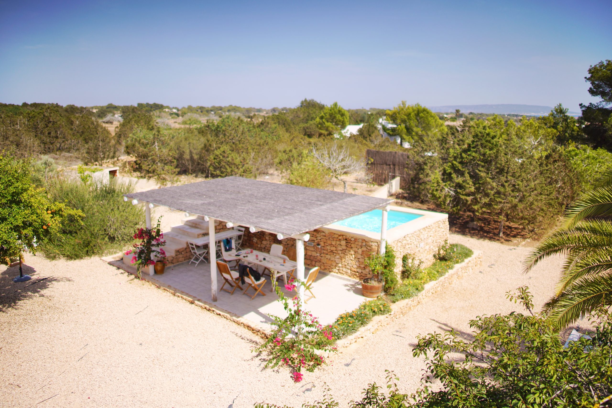 Una casa ideale con piscina a Formentera, Casa Cristina è una bellissima casa in affitto per le tue vacanze a Formentera. La casa si trova tra Sant Francesc e Cala Saona e dispone di 4 camere matrimoniali, soggiorno, cucina, tre bagni. È inoltre possibile usufruire di uno spazio esterno con piscina, barbecue e veranda per piacevoli cene. Ideale per famiglie e gruppi di amici che desiderano che l’alloggio sia un’esperienza in più da vivere sull’isola. La casa è accuratamente integrata nell’area in cui si trova. Le sue mura contadine, i suoi dintorni con fichi, pini, ginepri e piante aromatiche vi accompagneranno nell’esperienza di trovarsi in un luogo pensato per staccare e godere di questa bellissima isola.